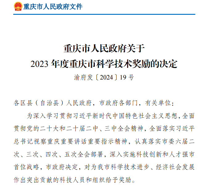 喜报!重庆DB真人旗舰集团荣获重庆市科技前进奖三等奖